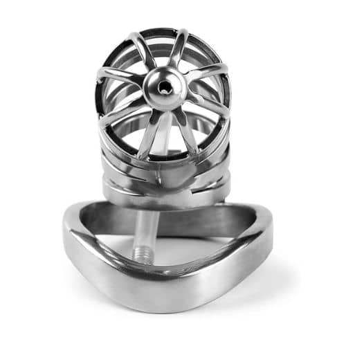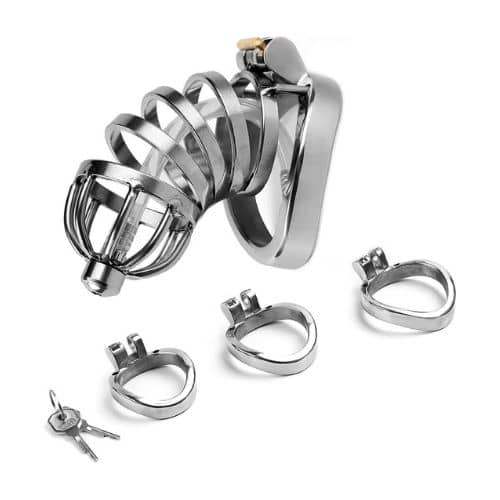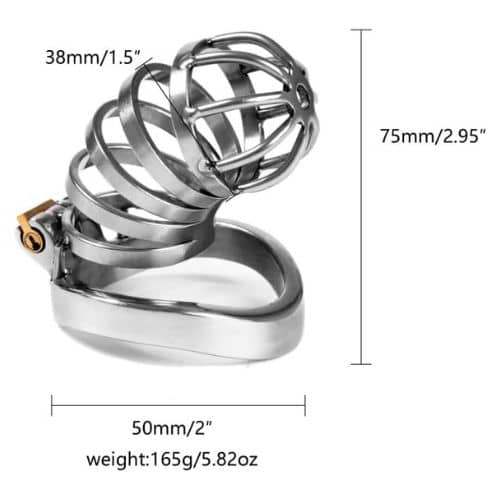 Stainless steel chastity device with a built-in lock and 2 keys. You can hand over control to your partner by giving her the key, adding excitement, trust, and fun to your relationship.